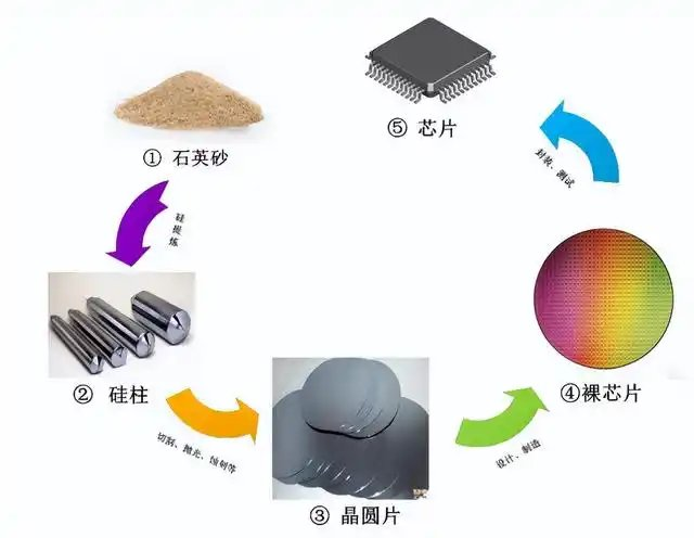 高纯度硅(99.9999%以上)通过掺杂可形成p型或n型半导体,是微电子工业的核心材料。
